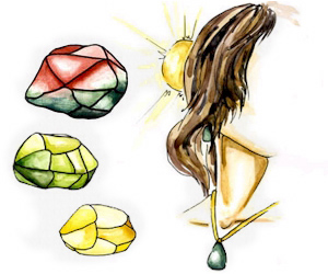 Fig. 11.: Chrysoberyl that displays a color change from green or blue-green in daylight to purple-red under incandescent light. 11